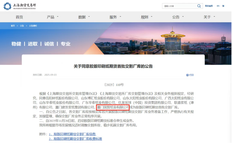 國貿(mào)股份獲首批上期所膠版印刷紙交割廠庫資質(zhì)。